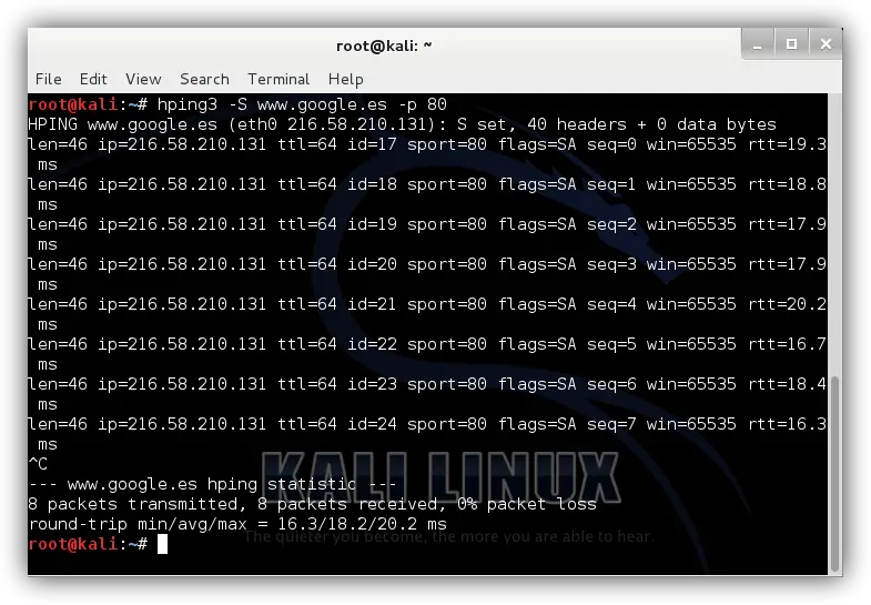 En raison du grand nombre de possibilités de cet outil, dans RedesZone, nous allons vous apprendre les principales utilisations et comment le faire. Cet outil, on pourrait dire que c’est un «ping» vitaminé, et c’est qu’on peut utiliser un grand nombre d’options avancées afin d’attaquer un hôte, vérifier si on a un port ouvert et bien plus encore. Bien que le programme par excellence pour effectuer un scan de port soit Nmap, et nous avons aussi Nmap NSE pour avoir des extensions supplémentaires et augmenter les fonctionnalités, ce programme Hping3 a aussi la possibilité d’effectuer un » scan de port «, car on peut envoyer des paquets TCP et UDP à différents hébergeurs, et vérifiez s’ils nous répondent ou non, de cette manière, avec un petit script créé par nos soins et ce programme Hping3, nous aurons la possibilité de faire un scan rapide des ports.