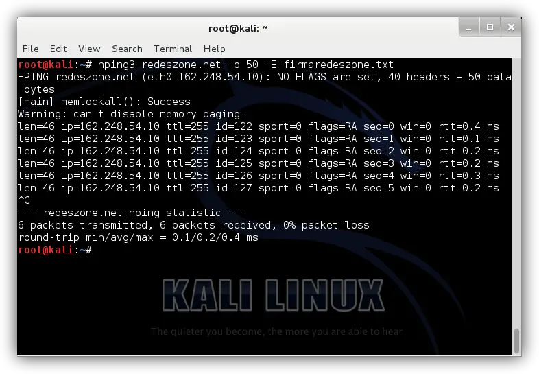 hping3 redeszone.net -d 50 -E firmaredeszone.txt