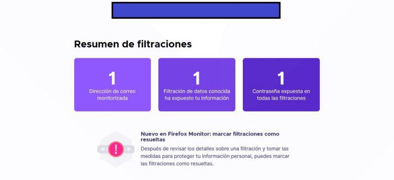 D’autre part, et plus bas, dans Protections de la vie privée , nous pouvons effectuer des recherches pour savoir si nos données ont été exposées dans un événement de violation de données . Ce type d’événement est à l’ordre du jour et il ne fait jamais de mal de réaliser ce type de consultation. La fonctionnalité de Firefox Monitor nécessite que nous ayons un compte Firefox, ce qui vous permet de tirer le meilleur parti des autres fonctionnalités de ce navigateur Web.