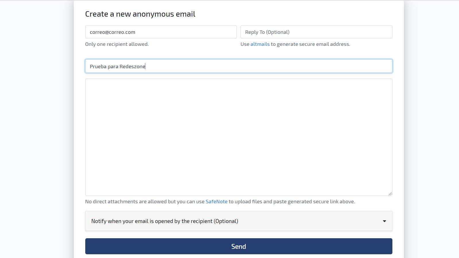 Au-delà de permettre uniquement d’envoyer un e-mail de manière anonyme, sans avoir à indiquer notre adresse, il nous offre également la possibilité de recevoir une notification lorsque cet e-mail a été lu. De cette façon, nous pourrons savoir si la personne à qui nous avons envoyé cet e-mail l’a lu.