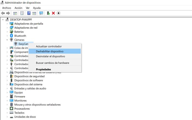 Nous pouvons le faire directement à partir du système d’exploitation lui-même. Pour ce faire, vous devez entrer dans le Gestionnaire de périphériques (nous allons dans Démarrer et écrivons-le) et une fois ici, nous allons dans la section Caméras . Ici, il nous montrera la ou les caméras que nous avons dans notre équipe. Normalement, il nous montre le nom du modèle, mais il peut aussi s’agir simplement d’un nom générique.