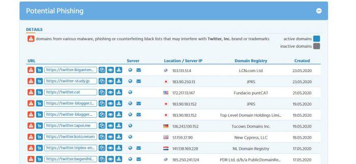 En ce qui concerne le cybersquattage , Immuniweb énumère les domaines qui auraient pu être enregistrés par Twitter et ceux qui ne sont pas. Ces derniers sont particulièrement dangereux car ils peuvent avoir des finalités trompeuses ou malveillantes, en demandant des données personnelles et des identifiants d’accès.