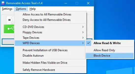 Avec l’outil d’accès amovible, nous pouvons facilement limiter l’accès USB à l’ordinateur. Dans ce cas, il dispose de 3 options de fonctionnement :