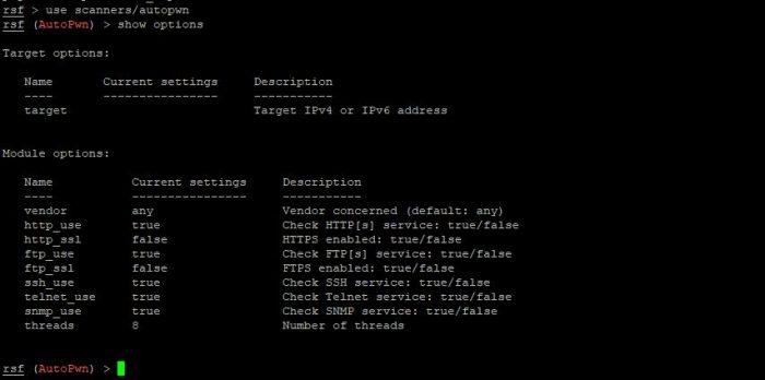 La première partie (Options cibles) explique comment vous pouvez accéder au routeur que vous souhaitez violer. Dans ce cas, c’est via l’adresse IP, soit IPv4, soit IPv6. Ce qui suit (Options du module) vous indique toutes les révisions qu’il pourra faire et quelles informations il pourra déterminer.