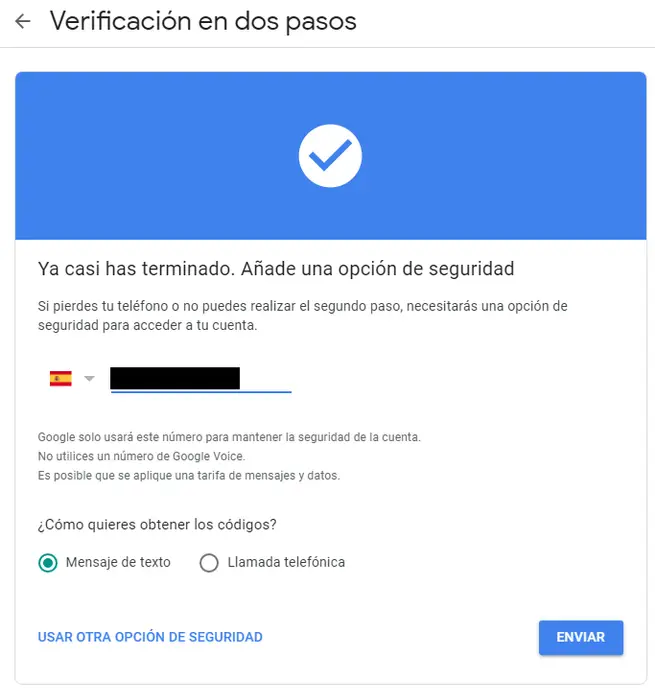 La deuxième chose qui se produira est qu’un code sera envoyé à notre téléphone via un message, un appel vocal ou notre application mobile. De cette façon, si quelqu’un essaie d’entrer dans notre compte, puisqu’il n’a pas ces données, il ne pourra pas y accéder.