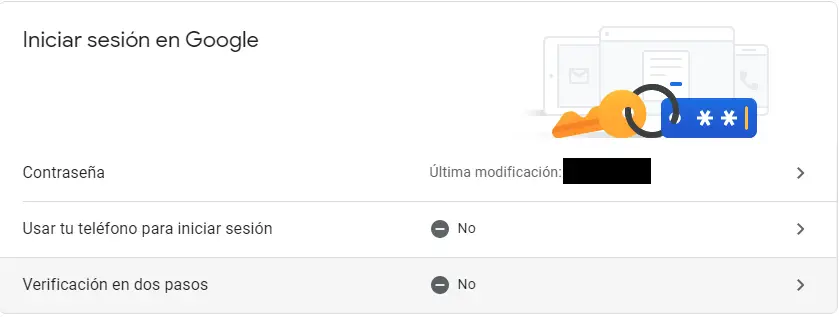 Une fois que nous connaissons les avantages que nous offre la vérification en deux étapes de Google, nous vous expliquerons comment l’activer. Dans RedesZone, avant de commencer ce processus, nous vous recommandons d’avoir préalablement établi un mot de passe fort. C’est la première chose que vous devez faire dans votre compte Google pour éviter d’être piraté.