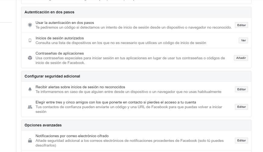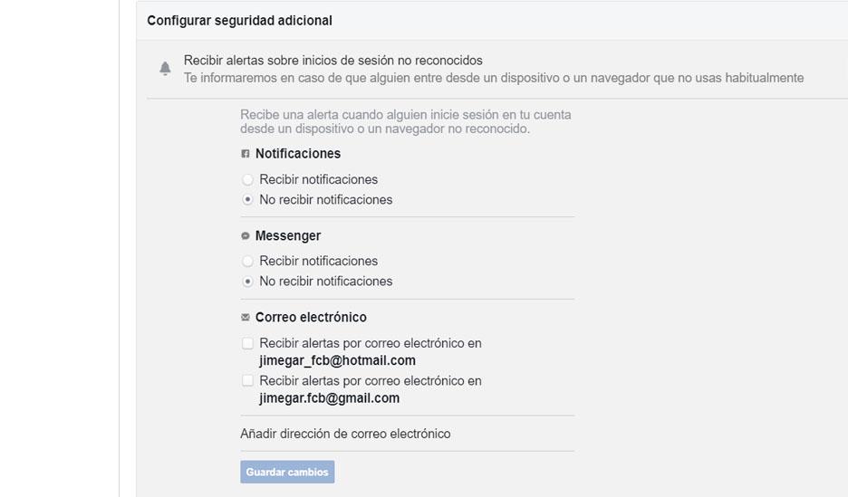 Cette option est juste en dessous de la précédente. Nous pouvons configurer si nous voulons qu’ils nous envoient un e-mail ou des notifications via le réseau social qu’il y a eu une connexion étrange.