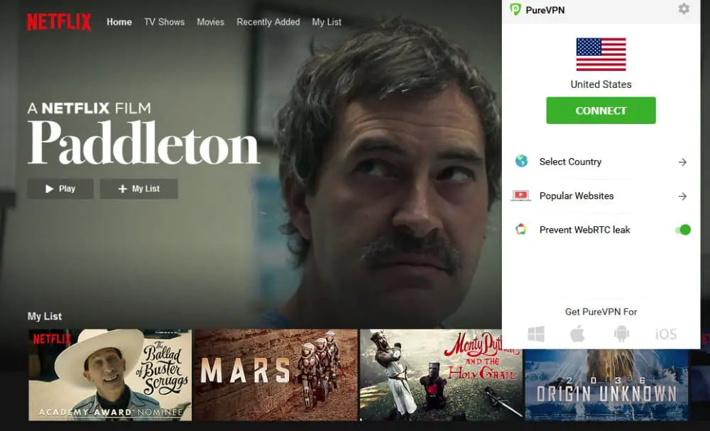 Netflix est lié par des accords de licence pour restreindre les films et émissions de télévision disponibles dans différents pays. Une émission télévisée ou un film peut ne pas être disponible dans votre pays d’origine, mais il apparaît sans problème sur Netflix America . Vous pouvez faire vos valises et faire un voyage aux États-Unis, mais cela semble être beaucoup de travail pour une seule émission de télévision. Au lieu de cela, essayez d’exécuter un service comme PureVPN, qui vous permettra d’échanger des emplacements virtuels en cliquant sur un bouton.