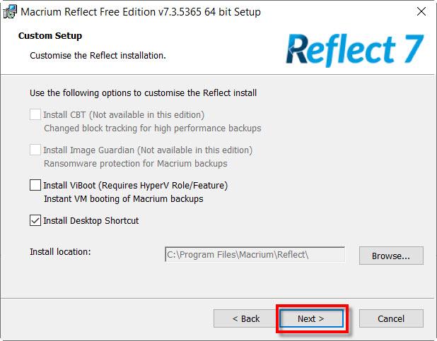 Comme vous pouvez le voir, l’installation gratuite est déjà sélectionnée, il vous suffit donc de cliquer sur Télécharger. La prochaine étape pour continuer l’installation de Macrium Reflect dans sa version Free Edition consiste à cliquer sur Suivant .
