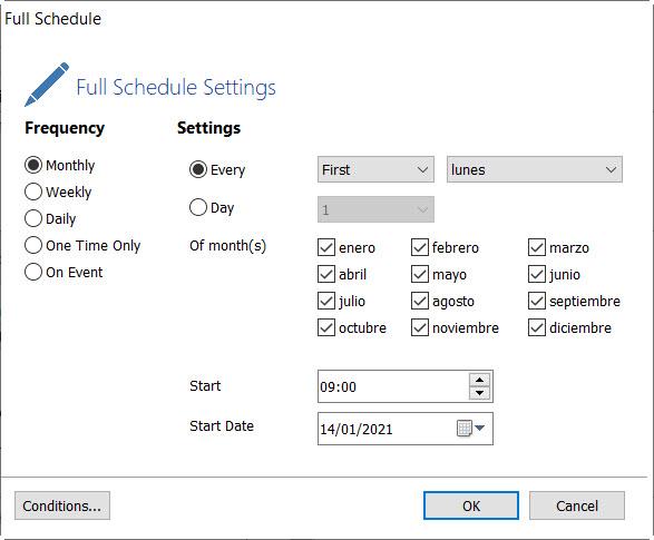 Ici, nous pouvons définir la fréquence, le jour et l’heure à laquelle cette tâche sera exécutée. Si nous ne voulons pas que vous en fassiez, cliquez simplement sur Suivant , et il nous proposera un résumé du travail à faire.