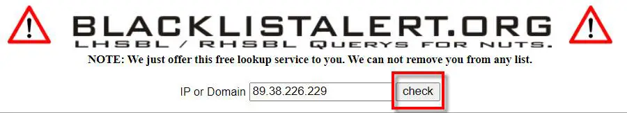 Une façon de savoir si notre adresse IP ou notre domaine est sur liste noire est d’utiliser l’ outil Web gratuit de Blacklistalert.org . Cela signifie deux choses, une que nous n’aurons rien à payer et une autre qui s’exécute dans le navigateur afin que nous n’ayons rien à installer.
