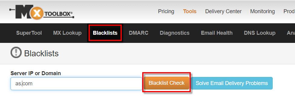 MX TOOLBOX est un autre outil que nous pouvons utiliser pour voir si notre IP ou notre domaine est sur liste noire . C’est, comme le précédent, un outil web gratuit auquel nous pouvons accéder via ce lien . Ensuite, nous obtiendrions un écran comme celui-ci, que nous utiliserions de la même manière que le précédent mais cette fois ce serait en cliquant sur la section Blacklists ci-dessus , puis en cliquant sur le bouton Black List Check :