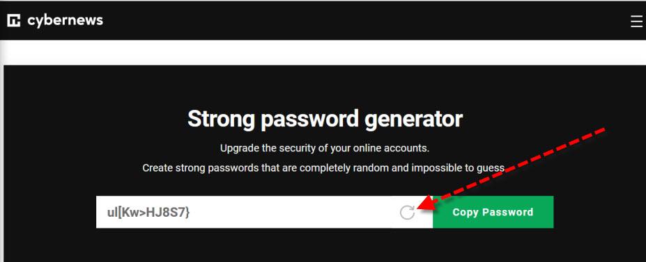 La façon dont cela fonctionne est très simple. Dès que nous cliquons sur le symbole indiqué par la flèche rouge, un mot de passe sera automatiquement généré. Ensuite, tout ce que nous avons à faire est de cliquer sur le bouton Copier le mot de passe pour l’enregistrer dans le presse-papiers. Ensuite en entrant control + v on peut le coller là où c’est nécessaire.