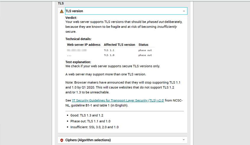De chacune de ces sections, nous pouvons obtenir plus d’informations. Par exemple, si la version TLS que nous utilisons est obsolète, elle nous montre des informations sur les plus récentes, pourquoi nous devons mettre à jour, etc.