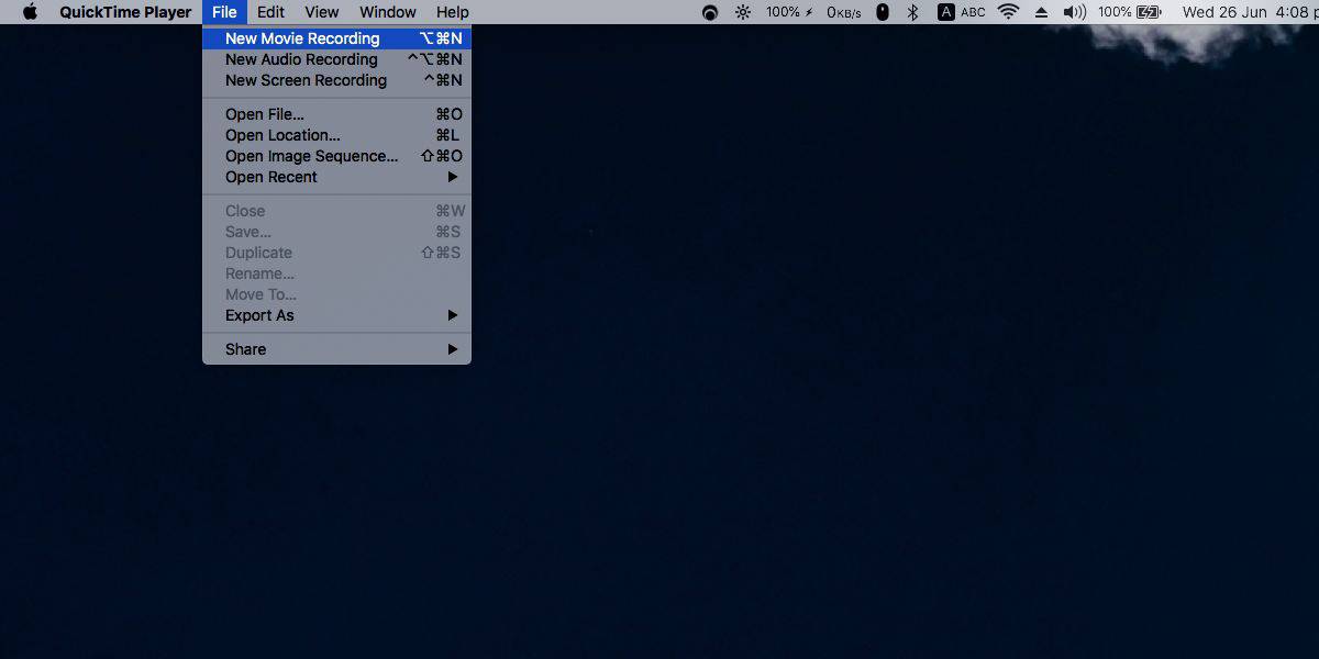 Connectez votre iPhone à votre Mac et ouvrez l’application QuickTime. Allez dans Fichier> Nouvel enregistrement vidéo.