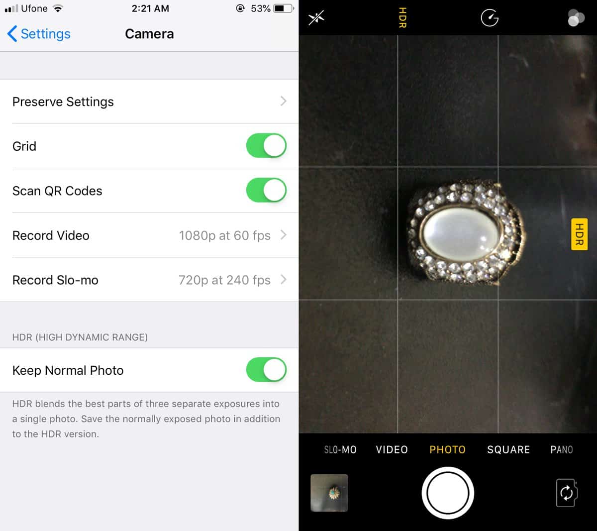 Paramètres de capture IPhone HDR