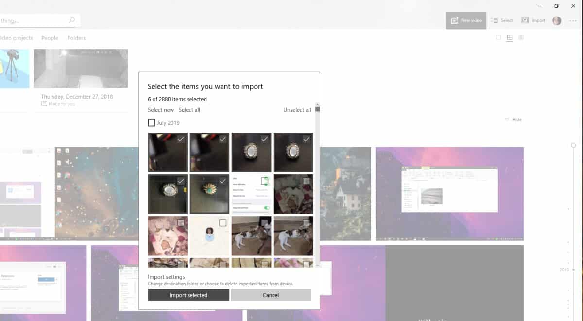 >> Importer dans les photos