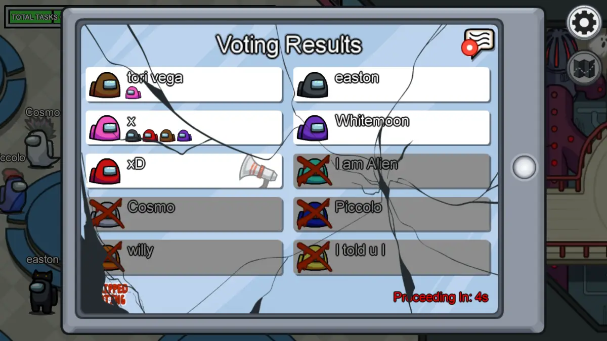 Les coéquipiers qui ont été éliminés ou les imposteurs qui ont été identifiés et expulsés restent dans le jeu en tant que fantômes . Les joueurs peuvent quitter le jeu s’ils le souhaitent, mais vous devez rester et terminer le jeu.