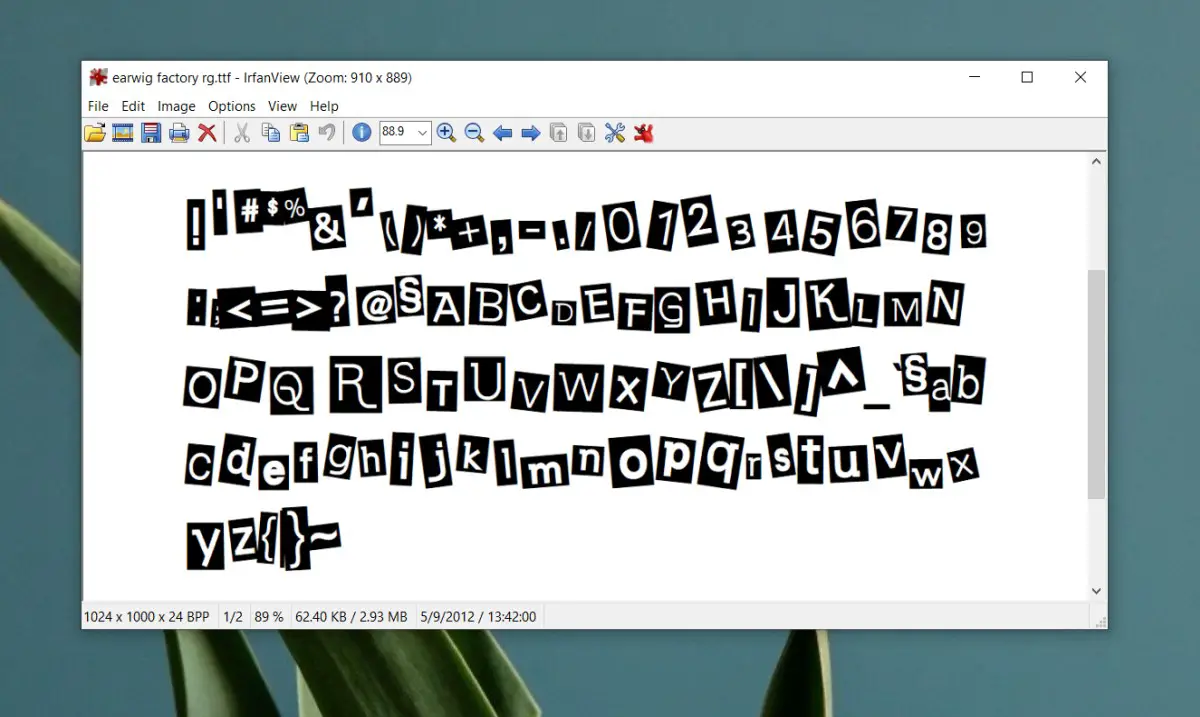 - Ouvrez le fichier de police dans IrfanView.