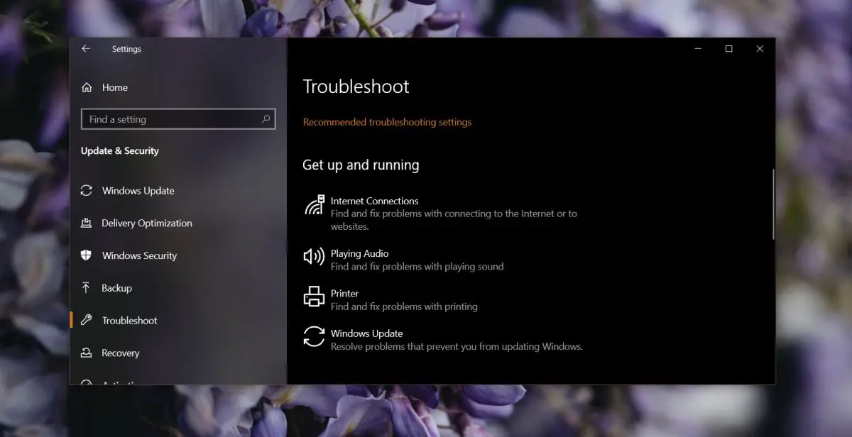 Windows 10 propose d’autres applications de dépannage spécifiques au matériel. Pour y accéder, ouvrez l’application Paramètres et accédez au groupe Paramètres de mise à jour et de sécurité. Sélectionnez l’onglet Dépannage et sélectionnez l’un des outils de dépannage à exécuter.