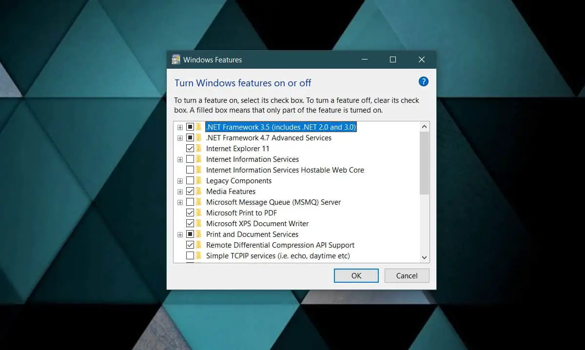 >> Cela ouvrira une liste des fonctionnalités Windows installées sur votre système. Examinez-le et vous trouverez Internet Explorer 11. Par défaut, il sera vérifié, indiquant qu’il est installé. Décochez-le et cliquez sur OK.
