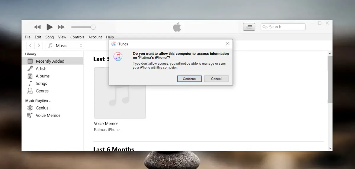 Vous devrez peut-être autoriser le PC à accéder à l’iPhone depuis iTunes.