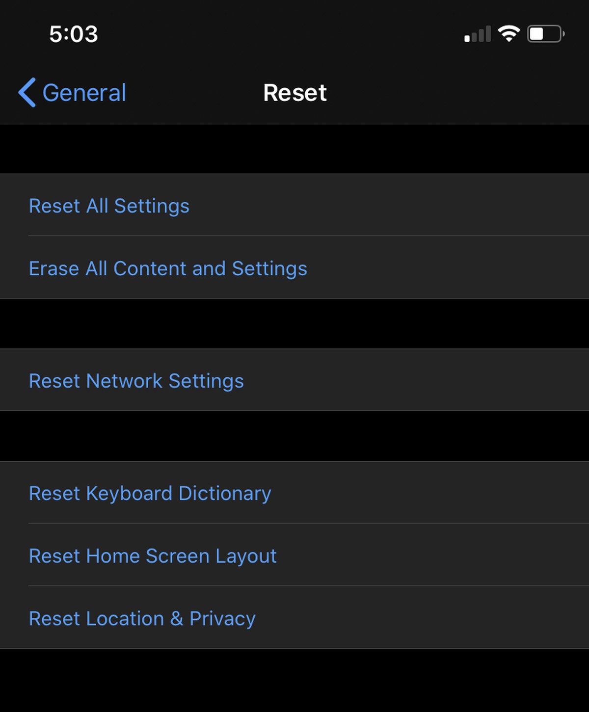 - Accédez à Général> Réinitialiser> Réinitialiser l’emplacement et la confidentialité .