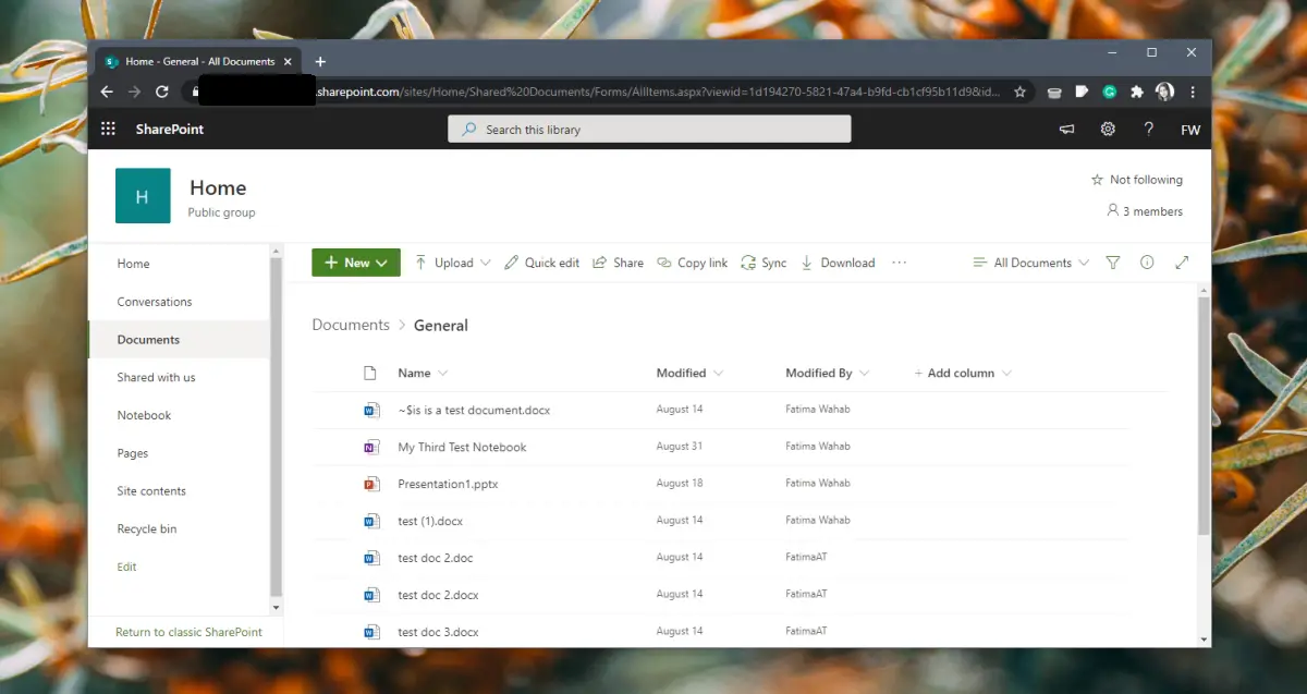 - Accédez à votre site Web Sharepoint dans votre navigateur.