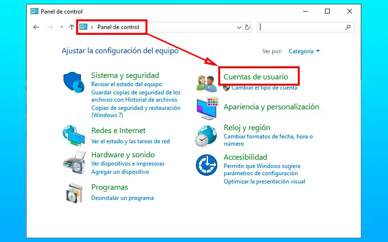 - Une fenêtre s’ouvrira avec différents types de paramètres, choisissez «Comptes d’utilisateurs» et le même bouton à nouveau.