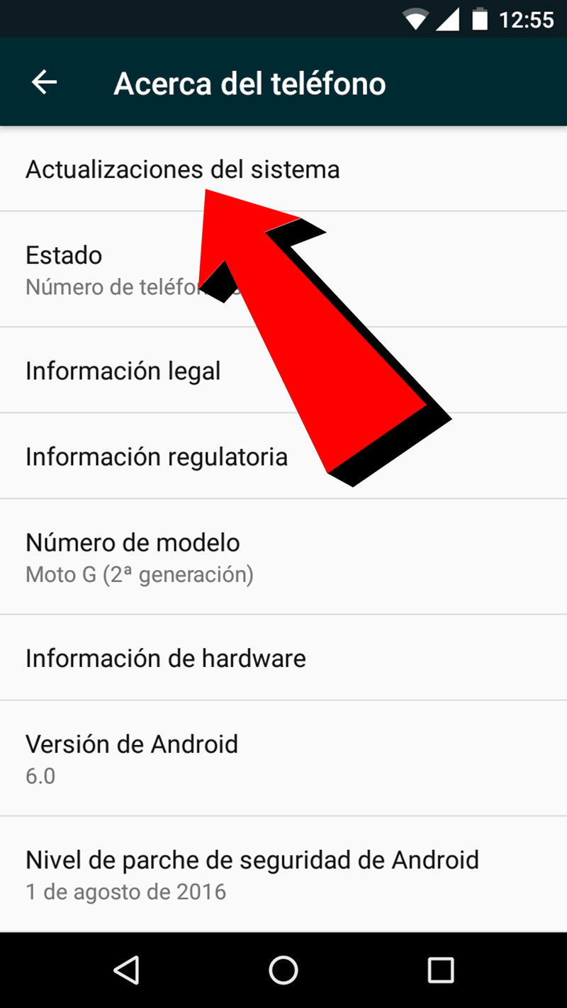 Dans les informations du téléphone, nous trouverons une option avec le nom des mises à jour du système ; cliquez sur cette option pour accéder à l’écran de gestion des mises à jour de notre smartphone Android.