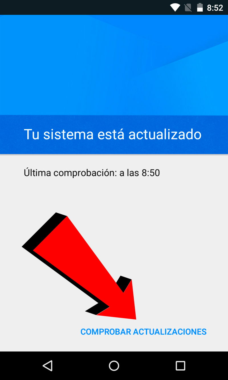Cet écran nous informera si notre terminal est mis à jour avec la dernière version d’Android disponible pour ce modèle de smartphone, ainsi que la dernière date de vérification des nouvelles mises à jour. Si à ce moment nous voulons vérifier s’il y a une nouvelle mise à jour pour notre mobile, nous pouvons cliquer sur Vérifier les mises à jour , option située en bas de l’écran; Au cas où il détecte une nouvelle version d’Android, le téléchargement commencera.