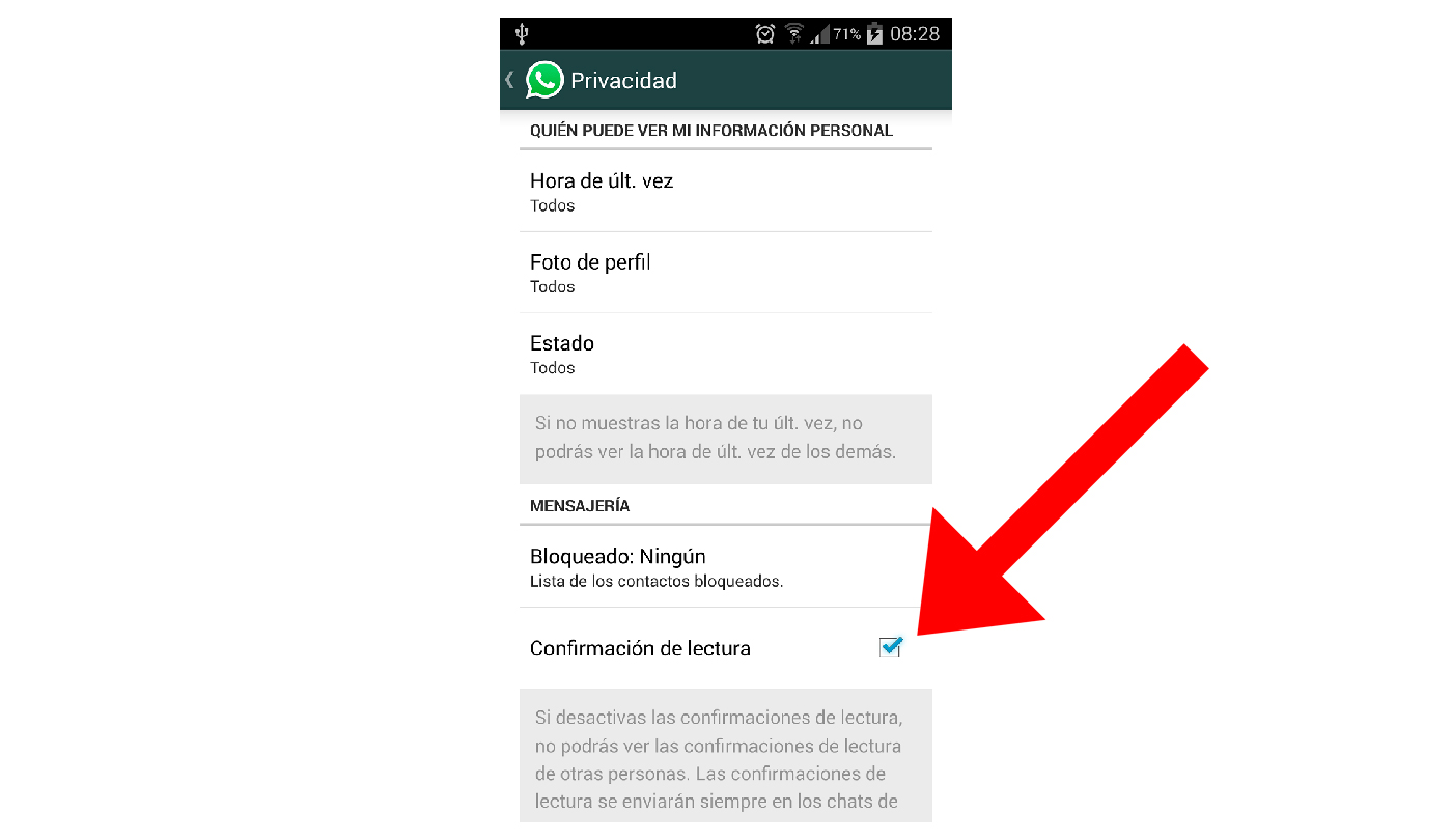 Une autre option pour que WhatsApp ne révèle pas que nous avons lu un message est de désactiver la confirmation de lecture des messages , gagnant ainsi plus de confidentialité vis-à-vis de vos contacts. Pour ce faire, ouvrez le menu des paramètres de WhatsApp , accédez à la confidentialité et désactivez l’onglet de confirmation de lecture . Bien sûr, avec cette méthode, nous ne pourrons pas voir si nos contacts ont lu nos messages, car les confirmations sont désactivées dans les deux sens. En revanche, s’ils sont dans un groupe WhatsApp, cette mesure n’affecte pas la confirmation de la lecture des messages.