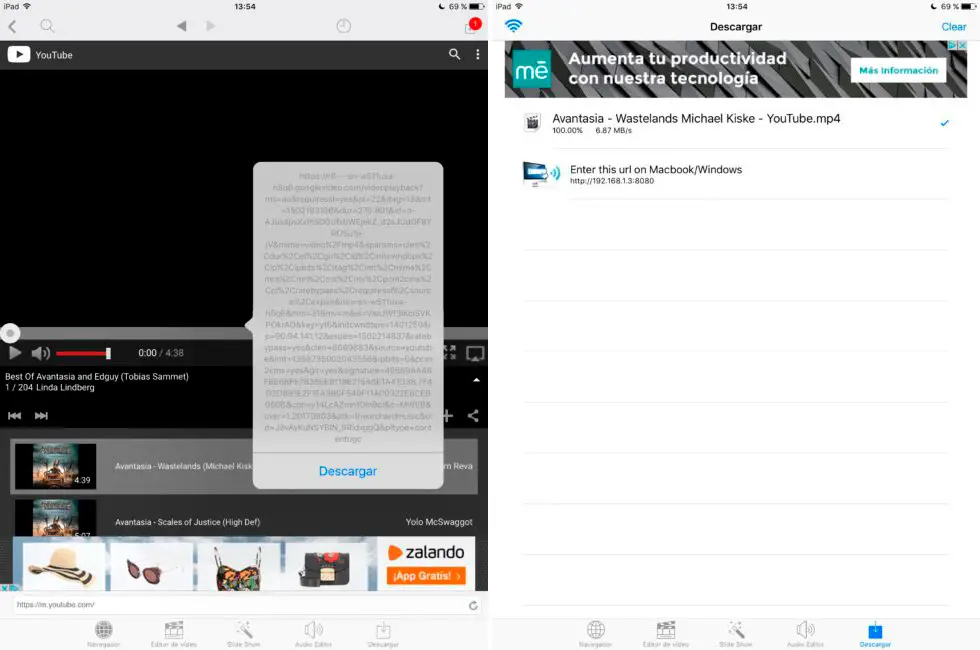 Comme son nom l’indique, il s’agit d’un éditeur vidéo pour appareils iOS qui comprend également un outil pour télécharger des vidéos YouTube . Bien sûr, les vidéos téléchargées sont stockées dans l’application elle-même, nous devrons donc y recourir pour les revoir (et non dans la section Photos iOS), même sans connexion.