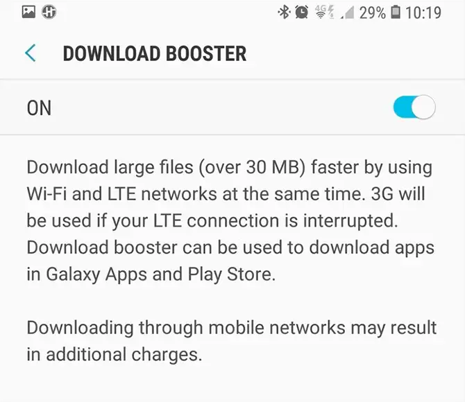 Samsung offre dans ses terminaux la possibilité d’améliorer le téléchargement des données Internet grâce au soi-disant Download Booster et le Galaxy S9 ne pouvait pas être moins; Ainsi, on peut combiner la connexion Wi-Fi et les données mobiles du terminal pour accélérer les téléchargements de données, notamment dans les gros fichiers. Pour ce faire, il suffit d’aller dans Paramètres – Connexions – Plus de connexions et activer l’icône Download Booster.