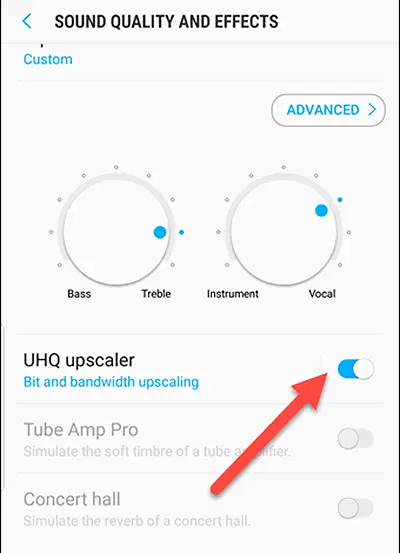 De plus, et grâce au menu Qualité sonore et effets , nous pouvons personnaliser le son du terminal en fonction de nos besoins, comme l’équilibrage des graves et des aigus ou la priorité des voix par rapport aux instruments ou vice versa. D’autres options sont proposées aux utilisateurs avancés tels que l’UHQ Upscaler, le Tube Amp Pro ou la salle de concert, entre autres.