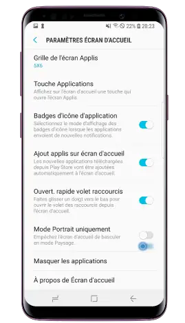 - Désactivez cette option pour mettre le Galaxy S9 en mode paysage.