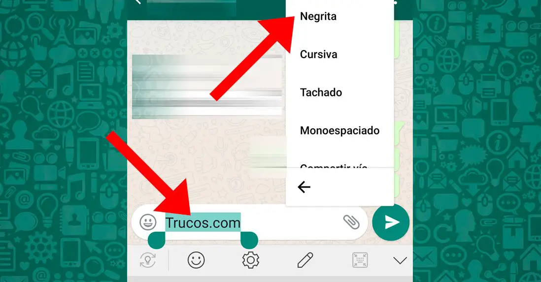 Si nous voulons écrire du texte en gras dans WhatsApp , encore une fois, nous pouvons choisir entre deux méthodes, soit par code , soit par sélection de texte . Dans le cas où nous souhaitons utiliser le code interne de l’application, nous devons introduire des astérisques (*) entre le mot ou la phrase que nous voulons mettre en évidence en gras.