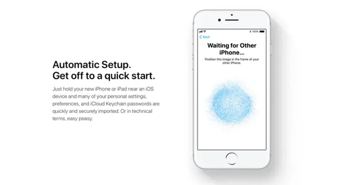 iOS 11 utilise un outil très pratique qui nous fera gagner beaucoup de travail si nous venons d’un autre smartphone sur le bloc. Bien entendu, notre ancien iPhone doit également être mis à jour vers la dernière version d’iOS . Ainsi, et grâce à la configuration automatique , nous pouvons transférer toutes les données de notre ancien smartphone vers le nouveau et cela nous permettra d’activer nos services iCloud , iMessage ou FaceTime , entre autres, automatiquement. Pour ce faire, il suffit d’avoir les deux terminaux côte à côte et de suivre les étapes indiquées à l’écran. Après avoir appuyé sur Continuer , nous n’avons quescannez le code qui apparaîtra sur l’ancien iPhone avec l’appareil photo du nouveau .