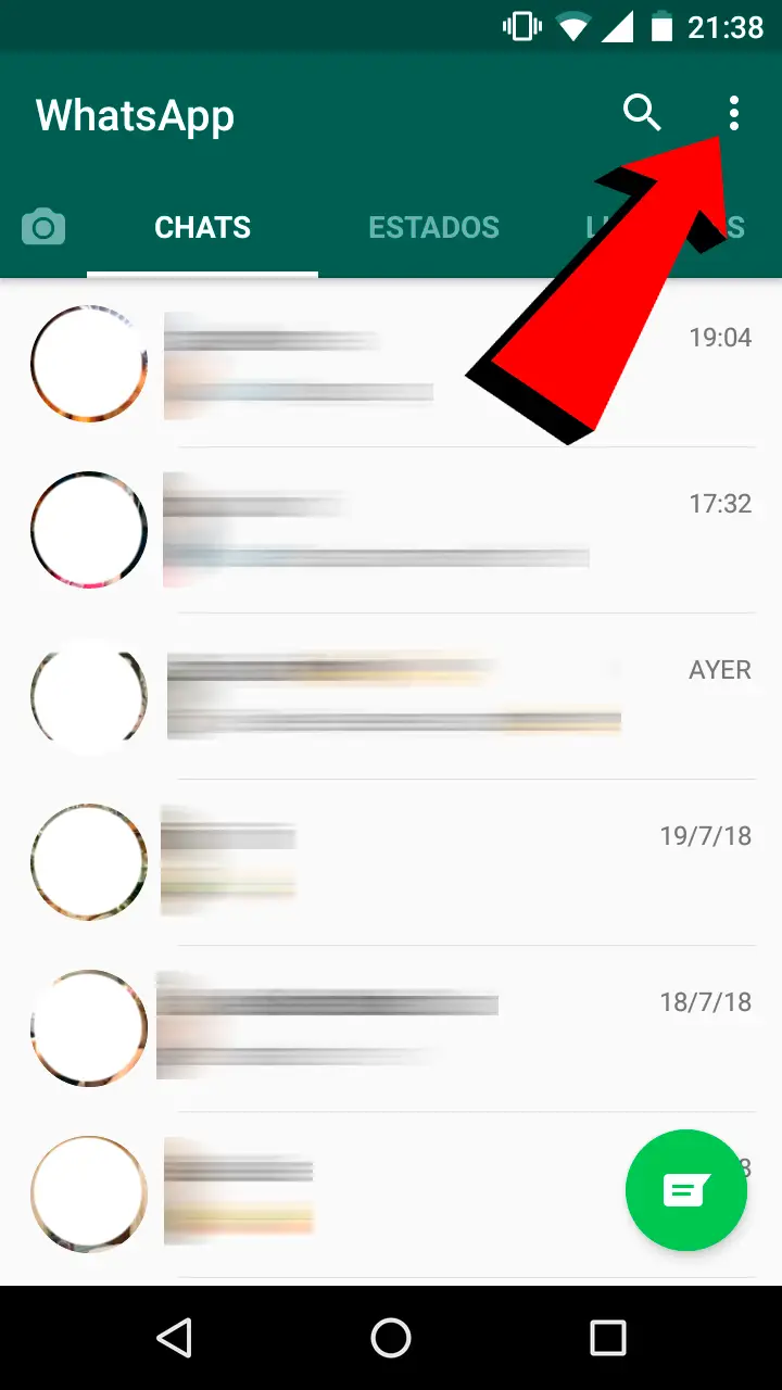 1 Affichez le menu d’options WhatsApp situé en haut à droite de l’écran, via une icône en forme de trois points .
