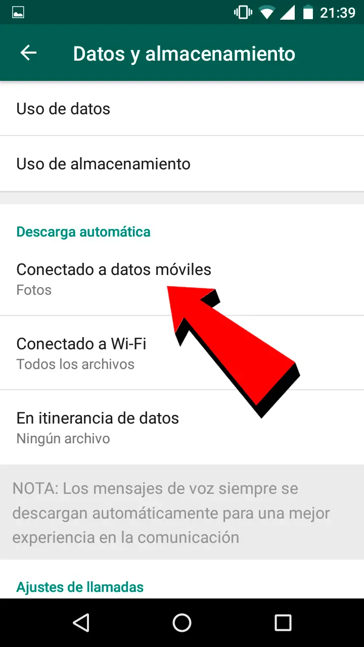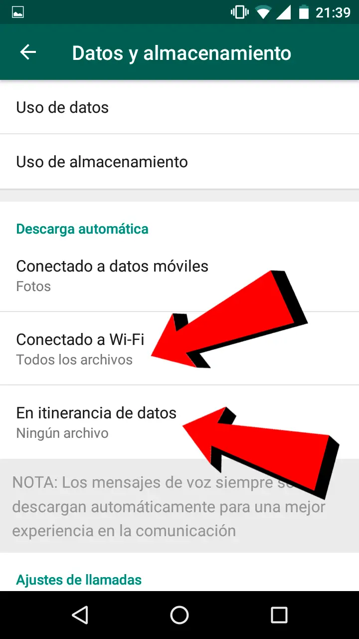 6 D’autre part, en téléchargement automatique , nous pouvons faire la même chose lorsque nous sommes connectés à des réseaux Wi-Fi et l’ itinérance des données ; Si nous voyageons à l’étranger, il est important de désélectionner tous les fichiers, car selon les pays, des frais supplémentaires peuvent être facturés assez chers.