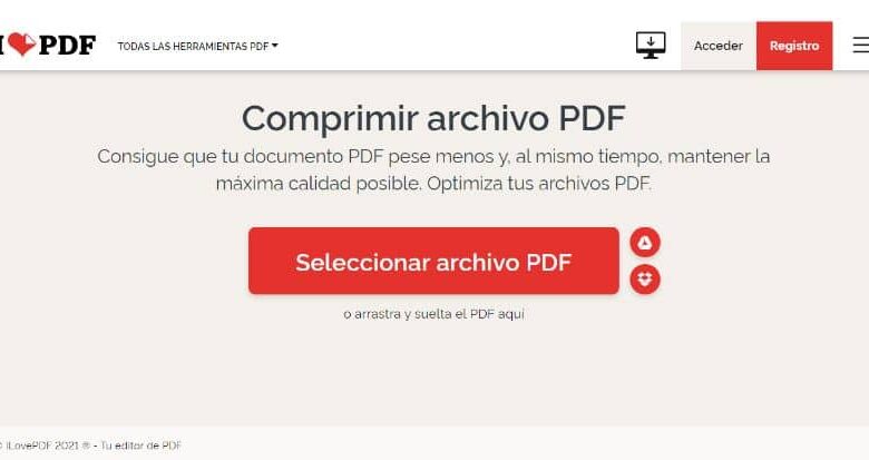 - La première chose à faire est d’accéder au site Web iLovePDF . Pour ce faire, cliquez sur «Compresser le fichier PDF avec ILovePDF».