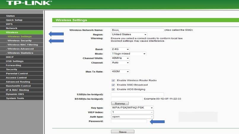 Afin de changer le nom que notre Wifi aura et la région où nous vivons, nous entrons l’option qui dit «Sans fil» suivie par Paramètres sans fil . Comme fait important, rappelez-vous que l’option États-Unis sera toujours proposée par défaut dans la localité.