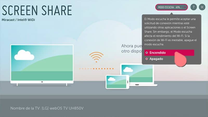 Sur la Smart TV, activez l’option Partage d’écran. Ensuite, sur votre PC compatible Screen Share, procédez comme suit: