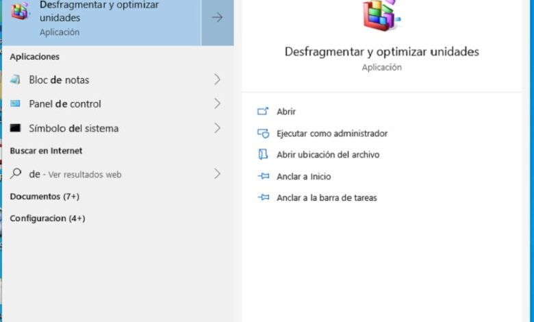 - Dans le cas de Windows 7, cliquez sur le bouton Démarrer et dans le champ de recherche écrivez le mot «défragmenter»