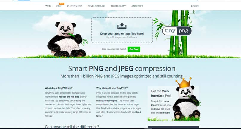 C’est l’un des favoris car il permet de compresser des images aux formats PNG et JPEG avec une qualité optimale. Tiny PNG vous permet de compresser jusqu’à 20 fichiers et de supprimer jusqu’à 5 Mo dans le processus d’optimisation.
