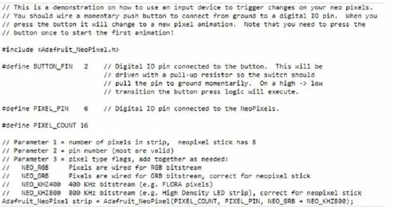 - #define PIXEL_COUNT 16 (dans cet exemple, il est configuré pour 16 LED)