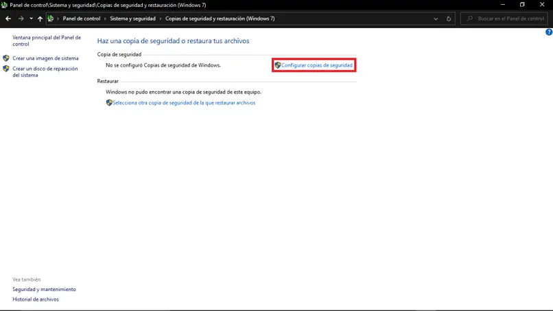 ⦁ À l’intérieur, sélectionnez l’option « Configurer les copies de sauvegarde »