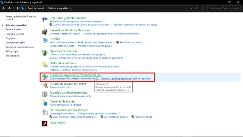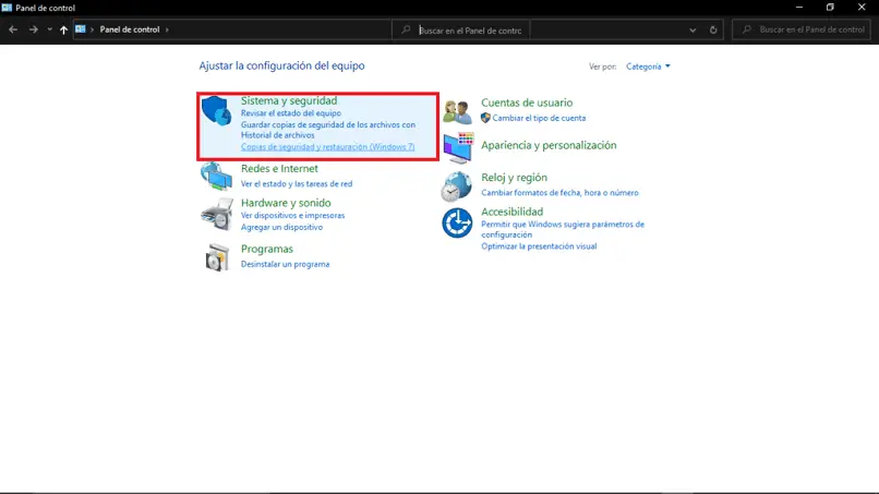 ⦁ Une fois à l’intérieur, nous sélectionnons la première option qui dit » Système et sécurité «