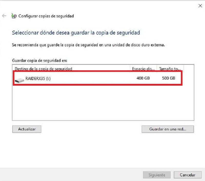 - Une fois cela fait, nous sélectionnons notre unité de stockage externe. Nous pouvons autoriser Windows à sélectionner automatiquement tous les fichiers ou à les sélectionner manuellement.