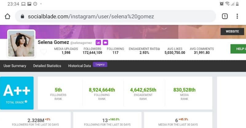 Bien que Social Blade ait une application pour les appareils mobiles, nous la considérons comme assez limitée par rapport à son site Web. Heureusement, nous avons la possibilité d’accéder au site Web via nos appareils Android, de cette façon, vous pouvez voir plus d’informations qu’avec l’application précédente.